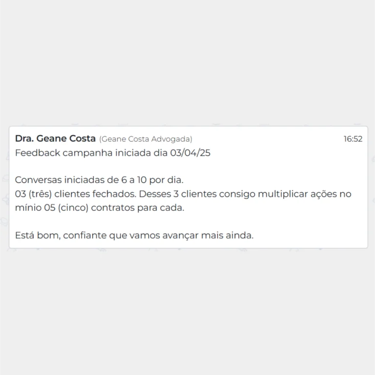 Após consolidar sua experiência em diversos projetos de crescimento, a 4juris dedica-se hoje a assessorar advogados e escritórios em todo o Brasil na estruturação de processos de captação, no fortalecimento de equipes jurídicas e na implementação de sistemas comerciais que garantem previsibilidade e escala.
